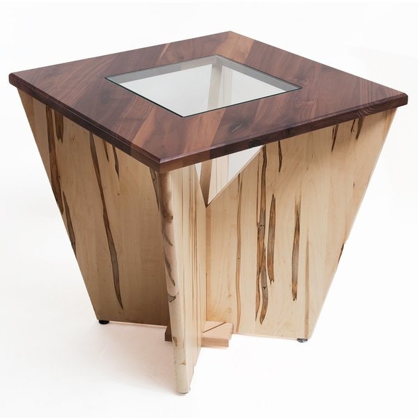 If you're looking for a living room accent that makes a statement, stop and take a look at our Amish Dighton Solitaire Glass Top End Table. This contemporary end table includes a unique base with angles that support the wood framed top with inset glass panel.