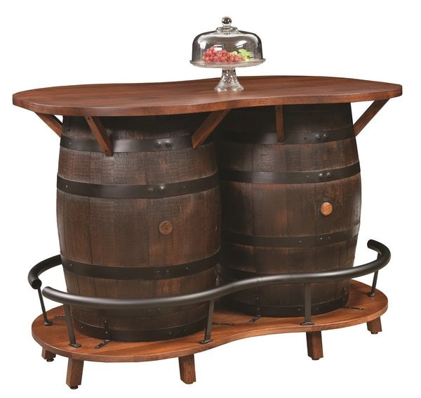 Here's a great spot to gather for a drink in true rustic style! The Amish Double Barrel Bar Table makes use of barrels and solid wood to create a unique, welcoming, rustic style bar table.