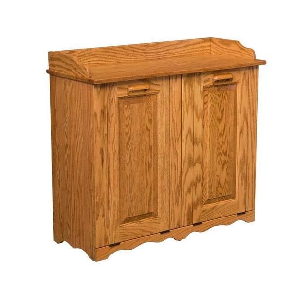 This grand Amish Double Tiltout Large Trash Bin is spacious, stylish and serviceable! Complete with two 50-quart wastebaskets and ample surface space, your kitchen or pantry will be provided with enough room to keep unsightly trash stowed away neatly. This Amish trash bin also makes an exceptional recycling station.