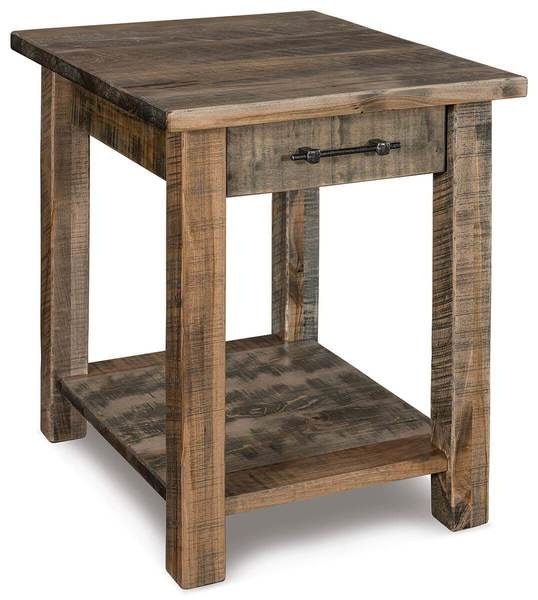 Well suited for a rustic, farmhouse, or country style home, our Amish Dutton Open End Table with Drawer and Shelf is made from rough sawn rustic brown maple. Its clean design includes a 1 1/8" thick top, open shelf and full-extending drawer that can be customized with soft close undermounts.
