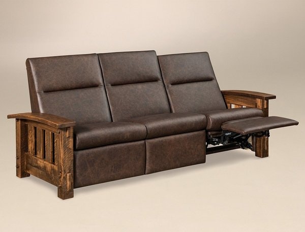 Amish Dutton Rough Sawn Maple Wood Mission Wall Hugger Reclining Sofa