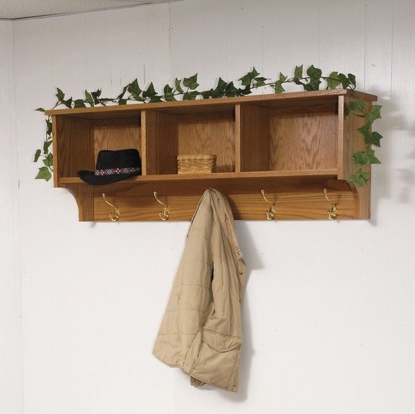 The Amish Edgehill Storage Shelf offers a great way to add stylish storage when you need it. In the hallway, mudroom or kitchen, this shelf and hook combo makes a delightful display.
