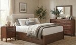 Every well-designed bedroom has a moment—the piece that anchors the space and quietly defines how it feels to live there. The Amish Elara Modern Platform Storage Bed is that moment. Sculptural yet inviting, refined yet deeply practical, Elara brings modern luxury and thoughtful craftsmanship together effortlessly. Its clean-lined platform silhouette makes a striking visual statement, while the upholstered headboard adds softness and comfort—an elegant contrast to the solid wood's strength.