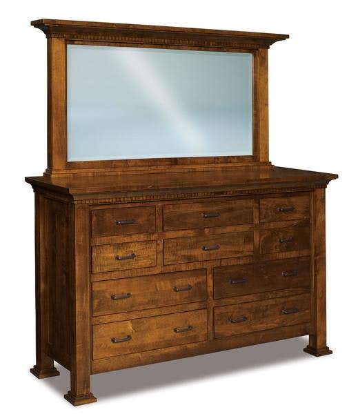 Order our Amish handcrafted dresser, which is part of our quick-shipping Amish furniture program. The 10-drawer dresser offers plenty of storage for your main bedroom, and the beautiful beveled mirror can be added to your order.