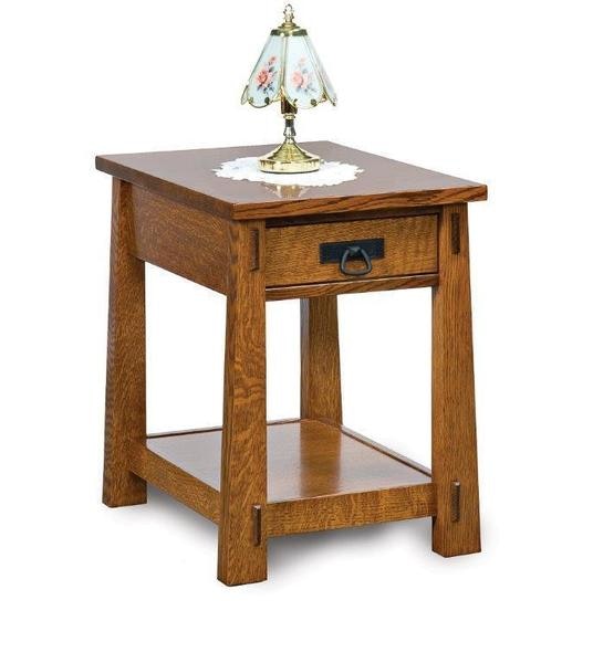 Arts & Crafts style inspired, the Amish Enchant Open End Table with Drawer features clean lines that will pair with a variety of furniture styles.