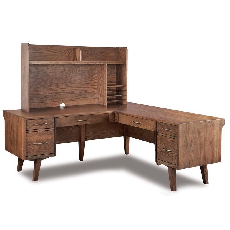 Featuring our Amish Enrich Mid-Century Modern L-Desk with an Optional Hutch Top, an asset to any home office.