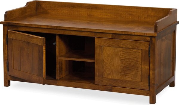 Take a seat in your entryway or foyer on the beautiful bench to take off your shoe and then store them along with your bag, backpack, umbrella and other gear. This storage bench is sure to help clean the clutter and make for a beautiful entryway. This Storage Bench is Amish handcrafted in Indiana and available in a wide variety of wood and finish options.