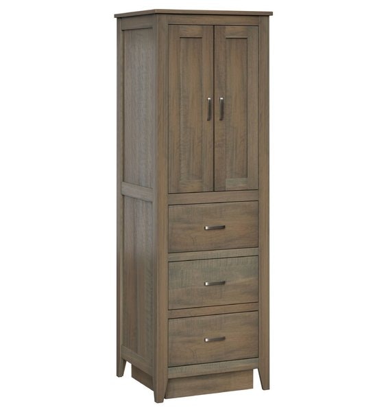 This Amish handcrafted linen storage cabinet has three roomy drawers and is available in an 18" or 24" wide and 72" or 84" height. Freestanding tall and narrow cabinets make great use of small spaces.