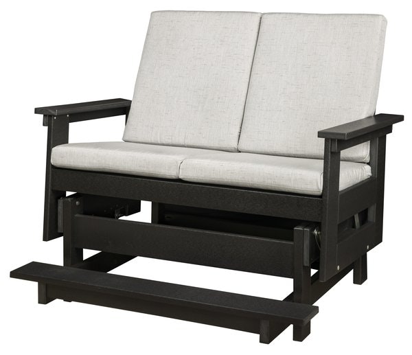 The Amish Forest Modern Lounge Step-Up Glider is ready for action! This gorgeous Modern Balcony Glider takes things outside for fresh air and much-needed relaxation. Sway and glide with a nice drink, a cool breeze, and your favorite person beside you. This Amish Outdoor Glider offers a step to rest your feet on while relaxing on your new patio and you can easily see out over the railing.