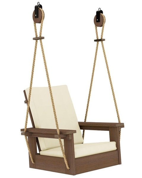 Meet the Amish Forest Modern Poly Single Porch Swing with Cushions — where timeless Amish craftsmanship meets playful, personal comfort. Handcrafted in the USA, this single-seat swing gives kids and adults their cozy spot to sway, dream, or just take in the view. Whether you hang one as a statement piece or several to create a fun swing lounge, each one turns your porch or patio into a place for joy and relaxation. Made from eco-friendly poly lumber that looks like wood but won’t crack, splinter, or fade, this swing is designed for years of carefree enjoyment. Plush outdoor cushions add soft, sink-in comfort, while the curved back and smooth edges support hours of peaceful swinging. With stainless steel hardware and durable hanging ropes included, setup is easy and maintenance is minimal — just wash with mild soap and water when needed. Choose your favorite poly color and cushion fabric to match your home’s personality — bright and bold for a playful vibe, or subtle and natural for a relaxed, modern look. Add a few in different colors to create a unique, cheerful outdoor space that your guests (and kids!) will love. Perfect for porches, decks, or gardens, the Forest Modern Single Swing offers a personal retreat that fits anywhere. It’s more than just a seat — it’s a moment of happiness, handcrafted to last a lifetime. Order one or mix and match a few to build your very own swing haven. Bring the fun home — order your Amish Forest Modern Poly Single Porch Swing today and create an outdoor space where everyone can swing, relax, and smile.See more products from this woodshop: Heritage Patio Furniture Collection