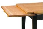 The draw extensions operate on hinges and solid wood slides. The extensions normally rest underneath the table at the ends. When they are pulled outward from the stowleaf table, they slide over the center of the hinge and are raised upward. They are then drawn back against the edge of the stowleaf farmhouse table and lock in place for a very solid and sturdy fitting.