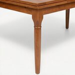 The hardwood that is used in the construction of this dining table is also sourced in the USA from sustainable forests. Choose to have the table built in your choice of oak, cherry or Brown Maple wood. We are happy to send out wood finish samples before or after you order to help you decide on the table stain or paint. Finish samples will also help you match the stain or paint up to existing furniture in your dining room or kitchen. Our furniture finish is resistant to water and other liquids however you still need to be sure to protect your table from liquids, heat and scratching.