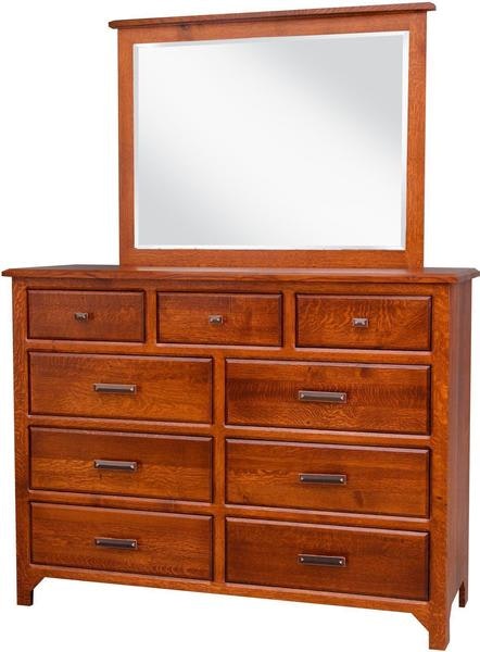 Handcrafted from harvested domestic hardwood, the Amish Grays Peak Dresser with Optional Mirror will be built to last a lifetime. Enjoy all nine dovetailed drawers available to you with full extension ball bearing side mount drawer slides.