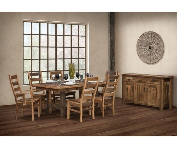 This Grove Reclaimed Barnwood Dining Set is actually two centuries in the making. Trees were cut down manually and made into barns. Many were abandoned and the solid wood that stood the test of time has now been repurposed for many more generations to enjoy.