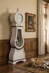 The Alistair takes its inspiration from Swedish Mora clocks, a beloved style that originated in the Mora region of Sweden during the late 18th century. These tall case clocks were handcrafted by rural artisans and carried home across frozen landscapes by horse-drawn sleds—earning them the nickname “Nordic longcase clocks.” Designed to be both beautiful and practical, Mora clocks became known for their softly curved, violin-like silhouettes, rounded heads, and warm, inviting presence. Unlike more rigid English tall clocks, Mora clocks embraced movement and flow, giving them a distinctly human, almost sculptural character.