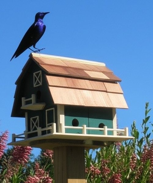 Invite one of nature’s most graceful and charming birds—the purple martin—to your garden with this Amish Handcrafted Barn Martin House, beautifully styled to resemble a classic Amish barn. With six apartment-style compartments, this house is thoughtfully designed to suit the unique nesting habits of purple martins, who prefer to live in close-knit colonies. Purple martins are more than just pretty birds. They’re natural mosquito controllers, aerial acrobats, and a beloved symbol of summer across much of the U.S.Martin House Features: