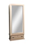 Inside, the cabinet is crafted to accommodate up to 10 rifles and 4 handguns, with a black veltex bottom that protects your firearms from scratches and damage. Below, a roomy drawer lined with black velvet provides additional storage for accessories, ammunition, or small items—keeping everything organized and within reach. What sets this piece apart is its attention to security: separate locks for the mirror frame and drawer ensure that access is controlled, offering peace of mind without compromising on convenience.