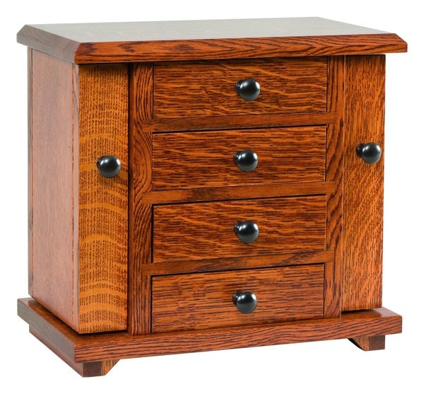 Customize your new jewelry box by selecting the perfect hardwood and finish combination, along with the velvet drawer lining and hardware to get just the right look for any decor. Your new jewelry box ships fully assembled and is ready to use. Order online, over the phone, or at one of our Amish furniture stores. We can't wait to help you find your perfect jewelry storage box.