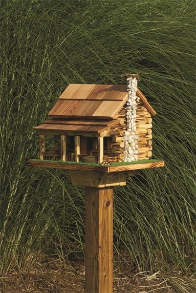 The back portion of the cabin's cedar roof lifts up to reveal the food hopper inside, and the cabin itself ships with a mount for a 4 x 4 post. If you have any questions, please get in touch - we would love to hear from you.