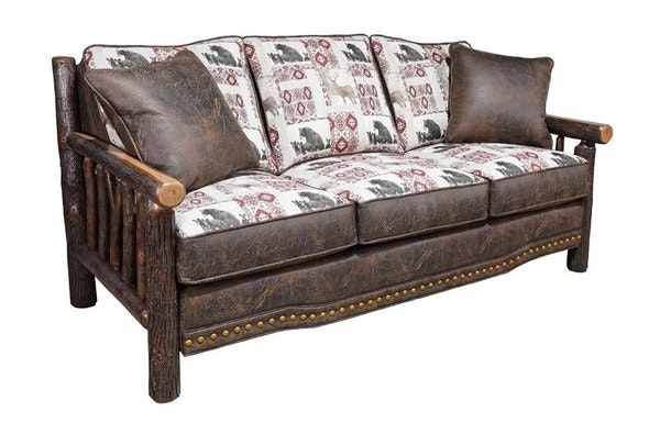 Amish Handcrafted Luke Rustic Hickory Log 77" Sofa