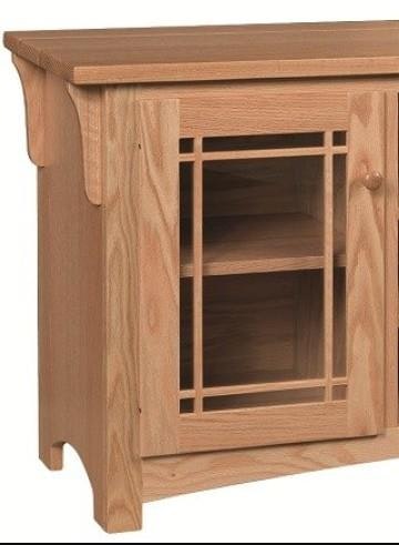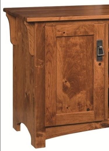 What’s not to love about the charming, no-nonsense mission-style design of our Amish Open Center Modesto Widescreen TV Console? Imagine a beautifully crafted piece of furniture that not only enhances your living room but also provides the functionality you need for an organized and enjoyable TV viewing experience. This solid wood TV stand combines rustic elegance with modern practicality, making it a perfect addition to any home. The Modesto console features three distinct sections that cater to all your storage needs. The inviting open center section comes standard with two adjustable shelves, providing ample space for your entertainment devices, books, or decorative items. Flanking the center are two side sections, each protected by stunning glass doors that reveal more adjustable shelving—perfect for storing DVDs, gaming consoles, or even a collection of your favorite books. Crafted with attention to detail, the rectangular design boasts a solid top that exudes strength and durability. Beautiful corbel details add character, while the mullion designs on the glass doors enhance the console's intricate look. The elegant arch at the base ties the whole piece together, making it a true statement in any room. Thoughtfully designed for convenience, this console features cord holes located at the center back top and the corner sides of the two sections with doors. These corner side cord holes lead into the open center section, allowing cords to be neatly passed through and out of sight, keeping your space tidy and free from clutter. Customization is key with the Modesto console. You can choose the width that best suits your space, opt for a flip top with a cord hole for easy access, or even select flat wood panel doors instead of glass. With a variety of wood types, finishes, and hardware options available, you can create a unique look that perfectly complements your décor. Pictured in oak with Michael's cherry stain, this console can be tailored to match your personal style. Bring warmth and functionality to your living room with the Amish Open Center Modesto Widescreen TV Console. Contact one of our Amish furniture specialists today to start customizing your new favorite piece and make your entertainment space truly your own!See more products from this woodshop: Dundee Casegoods Collection