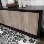 This sideboard stands out with its striking contemporary design, achieved through clean lines, a minimalist aesthetic, and the option for a stunning two-tone finish as captivating as the one shown. While rooted in traditional Amish woodworking, the design incorporates modern features for today's homes, creating a truly unique fusion of classic skill and current style. It's a piece that offers the warmth and authenticity of handmade furniture with the sleek functionality of modern living.