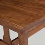 Step into a world of old-world charm and grand dining aesthetics with the Amish Handcrafted Solid Wood Jackson Trestle Dining Table. This striking table is a beautiful blend of the past and the present, pairing the enduring strength of traditional trestle construction with delicate, thoughtful design touches for a truly unique piece. The foundation of this table is its robust trestle base, a design with roots stretching back to the Middle Ages, showcasing tried-and-true stability. However, the Jackson table elevates this classic form with modern inclinations. Notice how the substantial base legs are gracefully flared at the bottom – this deliberate design choice adds a subtle elegance and serves to soften the bold lines inherent in trestle construction, creating a harmonious visual balance. It's a table that feels grounded and strong, yet possesses an inviting artistic quality. Rely on this custom-made dining table for everyday dinners, special occasions, or your favorite craft project. Its solid wood construction, expertly handcrafted by Amish artisans, ensures unwavering durability for generations. Shown here in Oak, a wood known for its strength and beautiful grain, this trestle dining room table is also available in premium hardwoods like brown maple, cherry, elm, hickory, and various rustic options, allowing you to choose the perfect character and finish to complement your home. Select your options online to design your new Amish dining room table exactly to your taste and needs. If you have any questions or would like assistance customizing your table or placing an order, we encourage you to contact us today. We're here to help you find the perfect solid wood piece that will become a cherished part of your home for years to come. Reach out by phone, email, chat, or visit one of our Amish furniture stores.See more products from this woodshop: Bay Ridge Collection