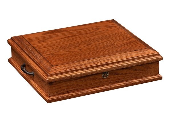 Imagine opening a jewelry chest that’s as timeless and beautiful as the pieces it holds. Our solid wood Shaker Jewelry Chest, handcrafted by skilled Amish artisans in the USA, is designed to protect, organize, and showcase your most treasured jewelry and keepsakes. Crafted from your choice of oak, cherry, or maple hardwood, this heirloom-quality chest features brass hardware, convenient necklace hooks, and a protective pouch to keep your items secure. Choose from rich hunter green or warm burgundy felt lining to cradle each piece in luxury. For a touch of personal style, you can opt for a rose design on the lid or add custom engraving to make it uniquely yours. Spacious yet elegant, the chest’s 17" width, 14 ½" depth, and 4" height provide ample storage without overwhelming your space—perfect for keeping everything from rings and bracelets to necklaces and heirlooms neatly organized and easy to find. Whether for yourself or as a memorable gift for someone special, this jewelry chest is a piece to cherish for generations. Ready to create yours? Call one of our Amish Furniture Specialists today to choose your wood, finish, felt color, and personalization options—or visit us in-store to see and feel the quality in person. Your custom jewelry chest will be handcrafted just for you.See more products from this woodshop: Heirloom Keepsakes Collection