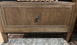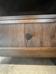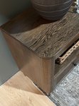 Notice the 2 1/4" round radius corners that soften the nightstand’s silhouette, adding a gentle touch to its structured form. Below the smooth top surface, an open shelf provides easy access to bedtime essentials—whether it’s a favorite book, your phone, or a small plant—keeping daily items within reach without cluttering the top. The single drawer, crafted with dovetail joints for durability, offers hidden storage for smaller items like glasses, jewelry, or a journal, keeping your nightstand tidy and uncluttered. What sets the drawer apart is its textured, ribbed front—a subtle design element that adds visual interest without overwhelming the piece, complementing the nightstand’s modern aesthetic.