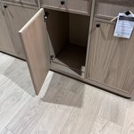 Designed with a keen eye for balance, the server features a symmetrical layout of three doors and three drawers, creating a streamlined, cohesive look. The drawer fronts add subtle texture with reeded grooves, a understated detail that introduces visual interest without disrupting the piece’s minimalist vibe. Softening its modern edge, 2 1/4" round radius corners on the top and frame lend a gentle, approachable feel, ensuring it complements both sleek contemporary spaces and warmer transitional settings.