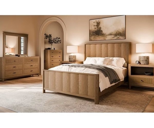 At the heart of the set is the bed, whose paneled headboard and footboard anchor the room with understated elegance. Clean, vertical lines and subtle indentations in the panels add gentle texture without overwhelming, making it a versatile centerpiece that pairs beautifully with both minimalist and layered decor. The matching dresser and nightstand echo this paneled design, ensuring every piece feels like part of a thoughtful whole—no mismatched styles, just a unified look that elevates your bedroom’s aesthetic.