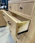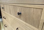 Design details set this chest apart: the top drawer features subtle reeded grooves, a textural element that adds visual interest without overwhelming the piece—ideal for balancing modern simplicity with understated elegance. The 2 1/4" round radius corners soften the chest’s silhouette, creating a gentle contrast to its clean, vertical lines, while slender legs lend an airy, light feel that prevents the design from appearing bulky. These elements work together to craft a look that’s both current and timeless, fitting seamlessly into transitional or modern interiors.