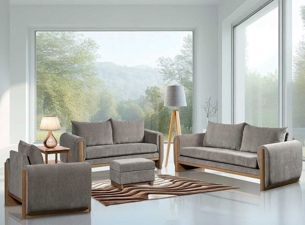 The Amish Harmony 4-Piece Living Room Set brings together modern design and expert craftsmanship in a cohesive, stylish arrangement. This set includes the Amish Harmony Sofa, Loveseat, Chair, and Ottoman, all featuring solid wood legs and beautiful upholstery, designed with a unique look where soft cushions are framed by the natural wood.