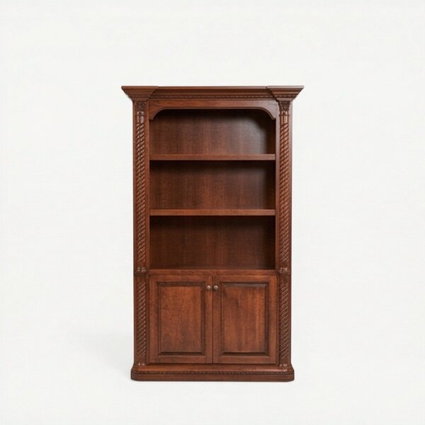 Corbels, delicate rope molding, and distinguished twisted flutes make this solid wood bookcase a sight to see.