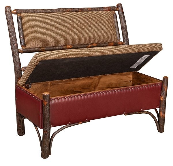 Amish Hoosier Hickory Wood Storage Bench