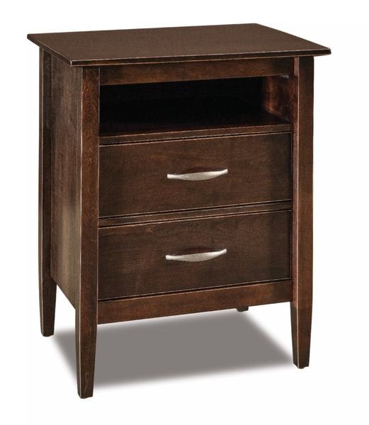 Set up bedside storage in modern style with a set of Amish Macey Contemporary 2-Drawer Nightstands. With tapered legs and solid wood strength, the Macey nightstand offers storage for things you want to keep by your bed, as well as an attractive place to host lamp and alarm clock.