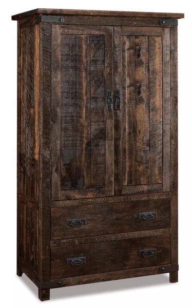Achieve a rustic look for bedroom easily with this wood storage. The Ironwood is Amish made in Indiana. It measures 40" wide, 23" deep and 71" high. Be sure to shop the matching Ironwood chest of drawers, dresser and nightstand for a complete set.