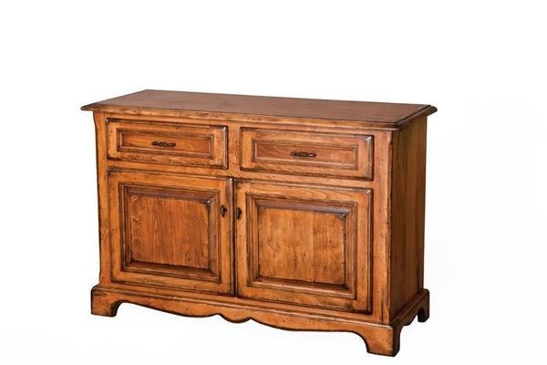 The Amish Grafton 42" Solid Wood Dining Buffet is the perfect example of romantic french country furniture. The solid wood base is rugged and full of purpose, offering two drawers and two cabinets for storage.