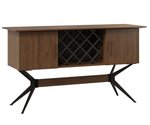 At its center, a striking diamond lattice wine rack takes center stage, providing a practical home for your favorite bottles while serving as a visual highlight. The geometric pattern adds a modern, artistic flair, turning everyday storage into a conversation piece. Flanking this feature are two smooth wooden doors, offering concealed storage for glassware, linens, or other dining essentials—keeping your space tidy without sacrificing style.