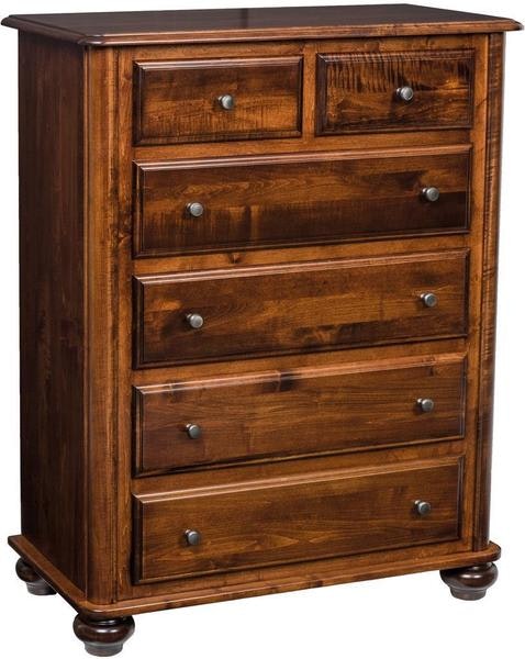 The Amish Kid's Henley Chest will be handmade in your choice of oak or brown maple wood. At 38" wide, this chest of drawers will instantly become a sleek storage solution in your suite. Utilize the six drawers to store your lingerie, pants, shorts, sweaters, blankets and more!