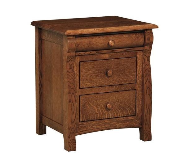 Select hardwoods are carefully cut and fashioned by skilled Amish woodworkers to create the Amish Emerson Three Drawer Nightstand. This delightful wood nightstand features two full lower drawers and one slender top drawer. Warm and relaxed with a French country air, the Emerson adds a lovely storage option bedside. Custom features allow you to build the version that's just right for your master, guest or child's bedroom.