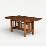 Discover a dining table built with unwavering strength, timeless design, and generations of sustainability in mind – the DutchCrafters Mission Trestle Dining Table. This table is not merely manufactured; it is carefully crafted by hand in a small woodshop in the rural town of Shipshewana, Indiana, by dedicated Amish artisans. Mission-style furniture is relied upon for utilizing a sound, simple design and turning it into stunning furnishings for your home. This philosophy is beautifully showcased in the Sheppards table, where clean lines, honest construction, and the natural beauty of solid wood take center stage. The Mission Trestle Dining Table presents an inviting design for gathering around for evening meals, holiday feasts, or any occasion worth sharing. Its distinctive trestle detail, with sturdy uprights and connecting stretcher, is not just functional for strength and durability; it's a visually appealing element that will draw the eye and beautify your dining room. Crafted from strategically selected fine hardwoods, this table is built for generations of sustainability. You can rely on its robust construction to stand up to daily life and become a cherished heirloom. While the design is a testament to enduring style, you can personalize its look to fit your home perfectly. Many wood and stain options are available to satisfy any look and desire, allowing you to create a table that is uniquely yours. Complete the set by adding our matching Mission dining room chairs and Mission trestle bench for a cohesive and beautifully crafted dining space. If you are still deciding on the stain, call us, and we will gladly send samples to your home! You can contact us with questions, customizations, or ordering assistance over the phone at one of our brick-and-mortar Amish furniture stores. Order today online, over the phone or at one of our showrooms locations. We are always happy to help.See more products from this woodshop: Bay Ridge Collection
