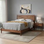 A perfect blend of minimalist design and timeless craftsmanship, the Kirtland Nightstand is the ideal companion for your bedside. It captures the heart of Mid-Century Modern style with its clean lines, gracefully angled legs, and the rich, warm grain of solid wood. A single, spacious drawer with a sleek, integrated pull keeps your nighttime essentials like charging cords and journals neatly tucked away, while the open shelf below provides the perfect spot for your current reading material or a favorite decorative piece. It’s a design that feels both stylishly retro and completely current.