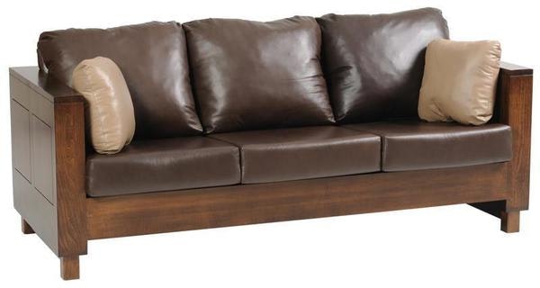 This Amish sofa with beautiful wood frame can be built in your choice of Oak Wood, Brown Maple Wood, Cherry Wood, Quarter Sawn White Oak Wood, Hickory Wood, Rustic Hickory Wood or Rustic Cherry Wood.