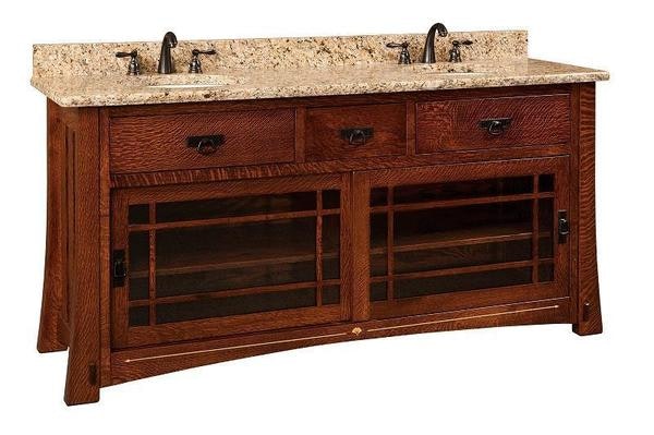 Looking to make your bathroom one to remember? Our Amish 72" Portland Mission Double Vanity Cabinet with Inlays will do the work for you! Featuring solid naturally yellow inlays and a host of other beautiful details that you will admire, this piece will become the focal point of any space.