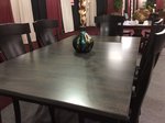 - The table features a solid 1" thick rectangle top with a classic Mission edge, providing a substantial feel and a timeless look that complements the modern base design.