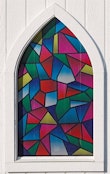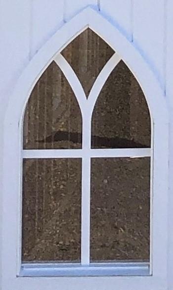 The Chapel features a Steeple, Grid Windows, and a Porch Overhang. Choose a size and window upgrades to design the perfect Chapel.