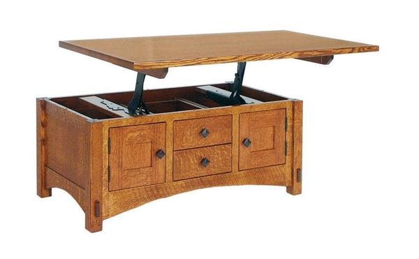 Our lift top coffee table is a great answer for someone that does not have much room for a coffee table and dining room table. These adjustable height coffee tables are popular in apartments, sailboats, yachts or motor homes and RVs. This striking Amish Lucern Cabinet Lift Top Coffee Table is designed and built by skilled Amish woodworkers with unmatched craftsmanship. Made out of several hardwood options in a variety of stains, this Amish coffee table can fit the present decor of your room while adding a touch of style.
