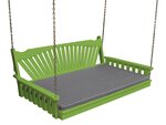 Fall in love with the Amish Pine Wood Fan Back Swing Bed custom made in the size you're looking for. A heavenly tool for relaxation, this spacious and inviting pine outdoor furniture is sure to become a family favorite. The perfect place to catch up on the news of the day with loved ones and a refreshing drink outside! Just as attractive as this beautiful fan design and the strength of pine wood is the price. Pretty as a picture, solid pine outdoor furniture provides you not only with sensational style but a great price to match.