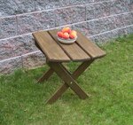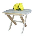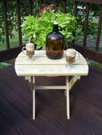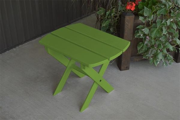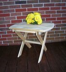 Complete your incredible outdoor scene with the Amish Yellow Pine Folding Oval End Table. This pine outdoor furniture offers an essential centerpiece to hold drinks, snacks, reading materials and phones. Three wide slats make up this handy pine table that fits right in on your patio or porch. Made of untreated American grown knot free southern yellow pine, this outdoor table will serve your family well for years. With an oval shape and an 18" width, this end table can be folded up easily to store.